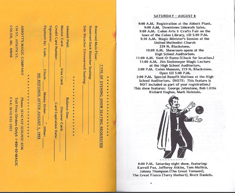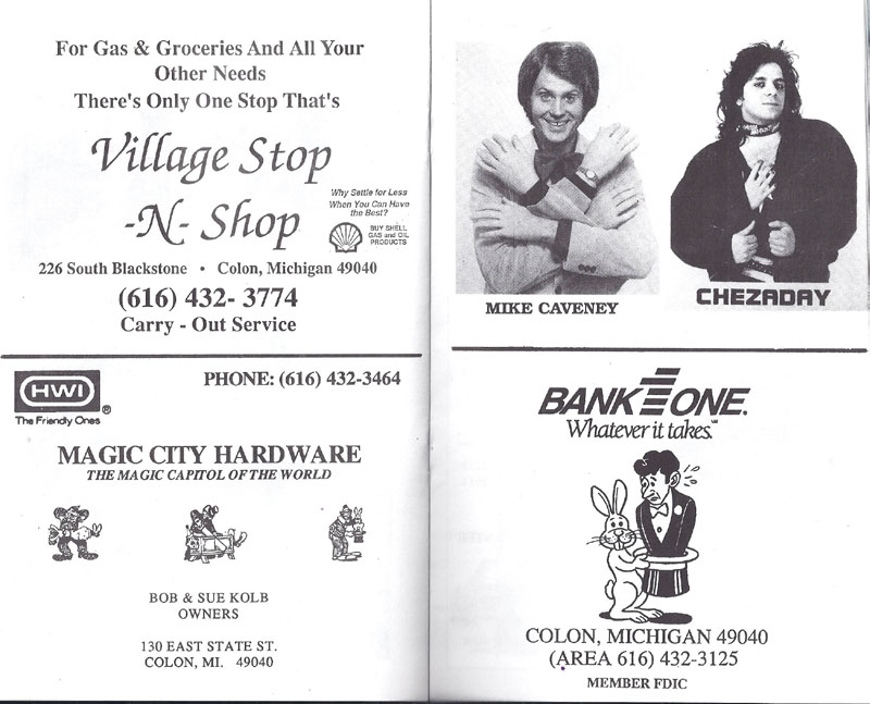 Welcome to the Magic Capital of the World. Abbott's Magic mission is simple: to provide the best magic products and service to our customers at the lowest prices possible. We take great pride in our company (which has been doing business since 1934), our commitment to customer service and in the products we sell. Our online store is designed to provide you with a safe and secure environment to browse our product catalog. The Abbott plant provides year round employment for our staff. More than 50,000 square feet is divided into the following departments: Business Offices, Printing Department, Art Department, Silk Dyeing, Computer Room, Sewing Assembly, Silk Screen Processing, Blacksmith Shop, Lathe, and Precision Metal Work, Plastic and Chemicals, Metal Casting, Tool and Die Making, Shipping, Experimental, Wood Working, Sheet Metal Shop, Stock Room, Paint Shop, Showrooms, Demonstration Stage and Magic Theatre. Our phenomenal success proves that we are the recognized leaders in magic - not only in America but the entire world. We are credited with instituting real and modern innovations for the benefit of buyers of magical apparatus - proof enough of our sincerity in wanting to give those buyers a fair deal always. Our factory facilities are such that we are in the position to make anything in magic. Also we own our factory buildings - the only buildings in the world designed for the sole purpose of manufacturing magic. Abbott's leads the entire magic field in producing original magic effects. To us, your first order is the beginning of a lasting friendship in magic. Abbotts is the publisher of Tops Magazine (30's - 50's), New Tops Magazine (60's - 90's), and most recently our free online version the Newest Tops Magazine with informative articles by some of todays top magic performers. Abbotts Magic Shop and Abbotts Magic Get Together have been in business since 1934. Annual events include the Closeup Magic Convention, Summer Magic shows at the Abbott magic plant, a 4 day Magic Convention in August aka Magic Get Together, and Magic Flea Market and Auction. The Magic Get Together magic convention is well over 70 years old and has had many of the worlds greatest magicians perform on its magic stage including Blackstone Sr, Blackstone Jr, Karrell Fox, Lance Burton, Mac King, Jeff McBride, Jeff Hobson, Harlan Tarbell,Cardini, Neil Foster, and about 900 more. Publications include Tops Magic Magazine, Abbotts Illusions, Colon MI aka the Magic Capital of the World, Abbott Magic Movies, Abbott's Magic Compendium, and Abbott's Magic Catalog which includes thousands of magic tricks, magic books, and magic illusions for magicians of all ages and all magician skill levels including beginner magician and professional magician. Abbott's believes that this website, www.magicgettogether.com, is the largest magic site dealing with a magic conventions in the world. To keep up with the latest at Abbott's be sure to sign up for our newsletter and visit our other sites - Abbott Magic Shop, Newest Tops Magazine. Abbott Closeup Convention, Abbott Flea Market